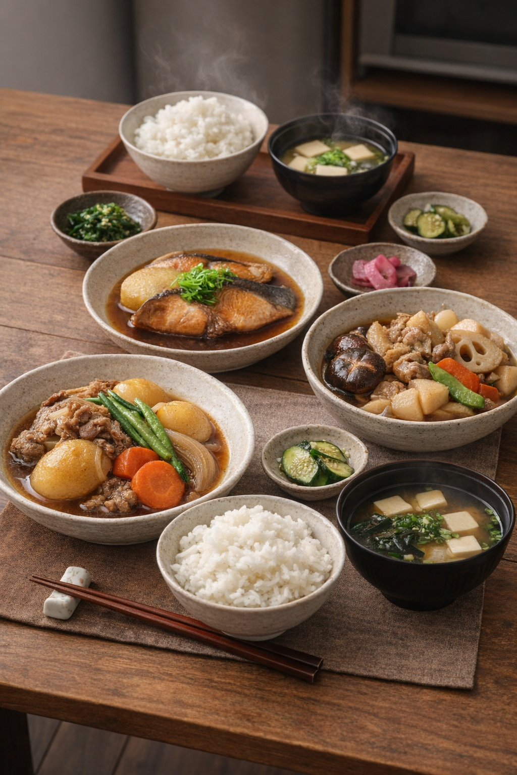 家庭料理コースでは、野菜の旨みを活かした肉じゃがやきんぴらごぼう、里芋の煮物など、家庭の定番料理を、毎日一種類ずつ学んでいただきます。