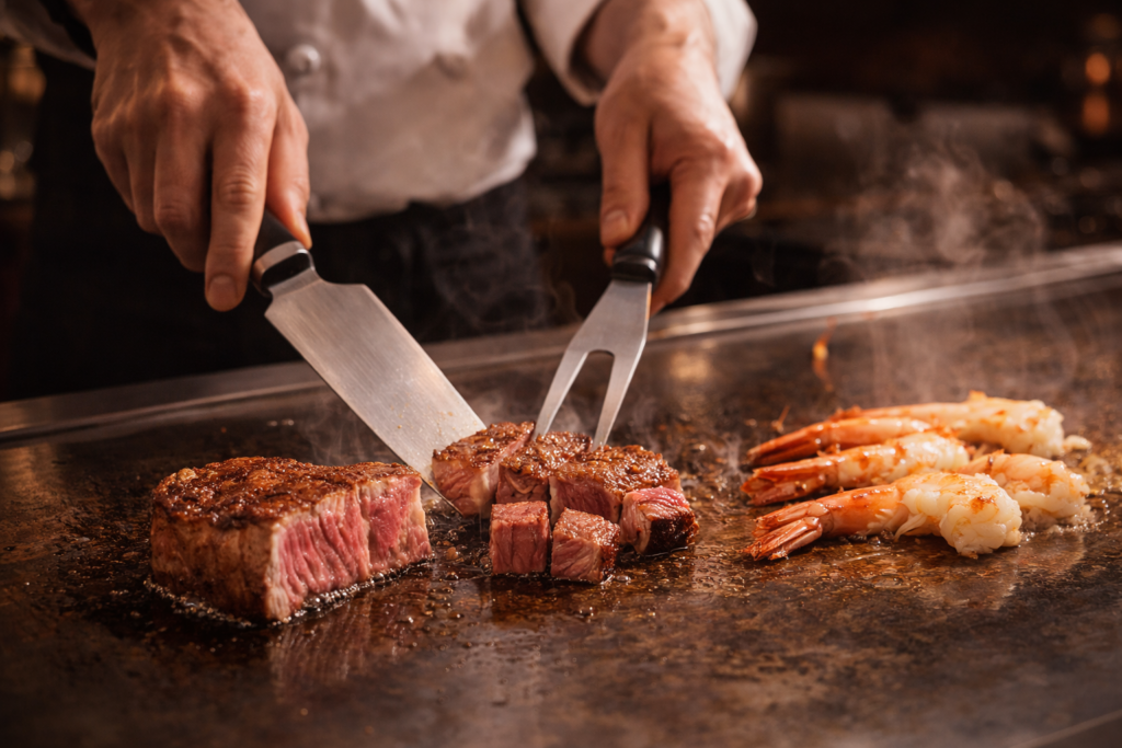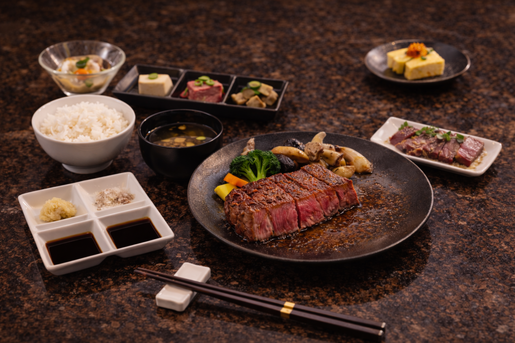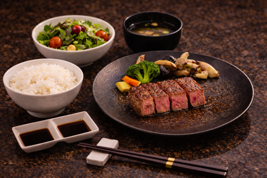 牛は、優れた肉質ときめ細やかな霜降りが特徴で、贅沢な旨みが口いっぱいに広がります。独自の飼育環境や丹念な管理により、肉には深いコクと甘みが宿り、焼くことで一層引き立ちます。シェフの技術と和牛の絶妙な調和が、最高のステーキエクスペリエンスをお届けします。